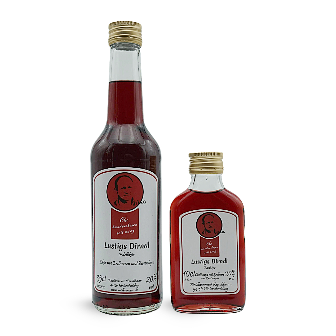 Woidbrennerei - Lustigs DirndlFruchtig süße Erdbeeren und vollreife Zwetschgen schmecken nicht nur den lustigen Dirndln. Der optimale Likör für eine gesellige Damenrunde.Die Kombination aus den saftigen Erdbeeren und den vollreifen Zwetschgen verspricht einen Likör mit einer perfekten Balance zwischen süßen und fruchtigen Noten. Ideal für gesellige Zusammenkünfte von Damen, bietet dieser Likör eine erfrischende Alternative zu klassischen Getränken.