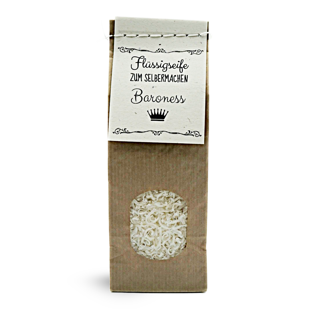 Tauche ein in die Welt der kreativen Seifenherstellung mit unserer Flüssigseife zum Selbermachen - BARONESS. Mit dem bezaubernden Duft von Lindenblüten, hergestellt von der renommierten Woidsiederei, wird das Baden zu einem luxuriösen Erlebnis. Unsere Seife enthält sorgfältig ausgewählte Inhaltsstoffe, die deine Haut sanft reinigen und verwöhnen. Die beiliegende Anleitung führt dich Schritt für Schritt durch den Prozess, sodass du spielend leicht deine eigene individuelle Seife herstellen kannst. Exklusiv bei Woidladinger.de erhältlich!