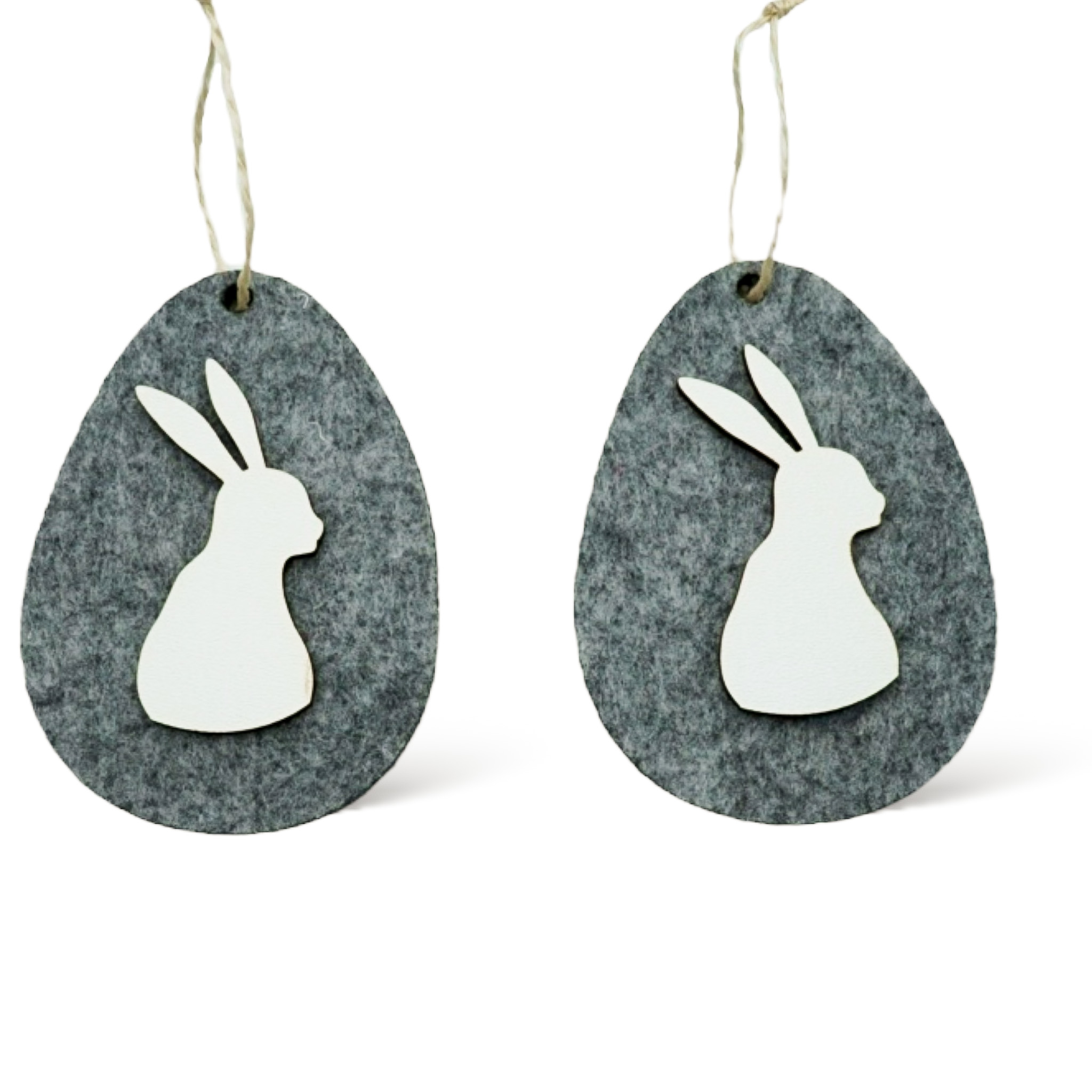 Verschönern Sie Ihr Zuhause mit diesem entzückenden 2er Set Osterdekoration, bestehend aus liebevoll gefertigten grauen Filzeiern, die mit einem charmanten Holz-Hasen verziert sind. Diese handgefertigten Osterdekorationen verleihen Ihrem Zuhause eine warme, festliche Atmosphäre und sind perfekt, um Ihr Osterfest zu bereichern.