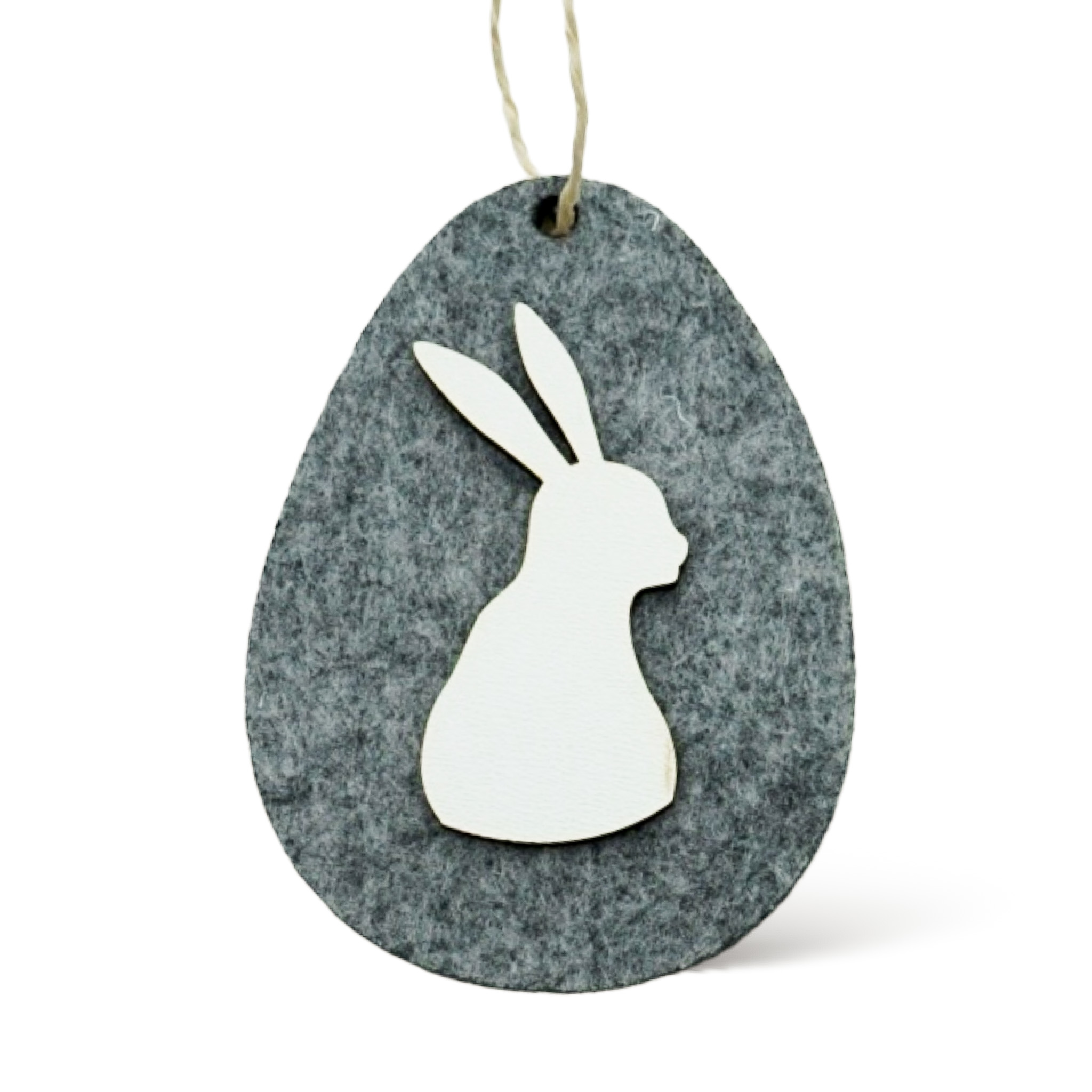 Ob auf dem Ostertisch, dem Kaminsims, im Regal oder als Teil einer kreativen Osterdekoration, diese grauen Filzeier mit den niedlichen Holz-Hasen verleihen jedem Raum eine besondere Note.