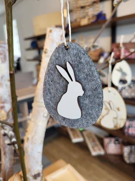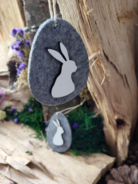 Graue Filzeier mit bezaubernden Holz-Hasen!
