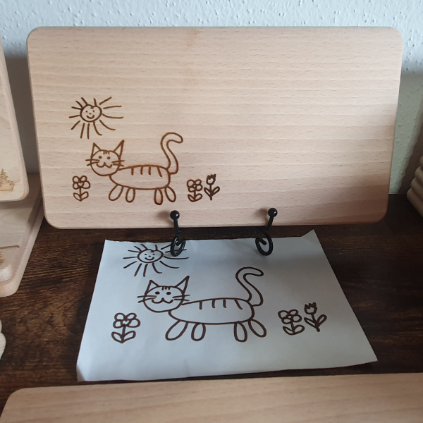 1. Unikate: Jedes unserer Brettchen ist ein Unikat, sorgfältig von Hand gefertigt und mit Liebe zum Detail veredelt. Das macht deine Zeichnung einzigartig (Unikat), und zu einem einzigartigen Kunstwerk.