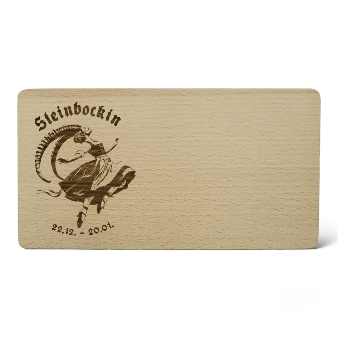 Ein Stück Himmel auf Ihrem Tisch: Graviertes Frühstücksbrettchen mit Steinbock-Motiv