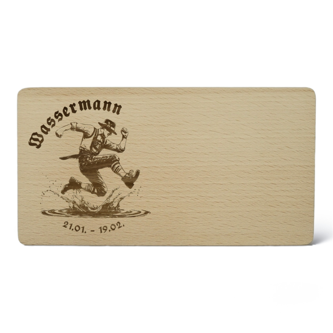 Sternenstark & Persönlich – Graviertes Frühstücksbrettchen "Wassermann" aus Holz