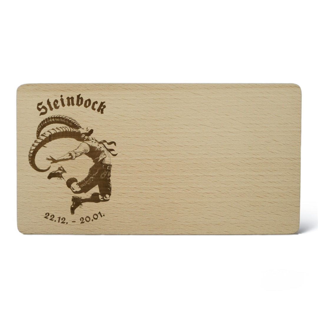 Ein Stück Himmel auf Ihrem Tisch: Graviertes Frühstücksbrettchen mit Steinbock-Motiv