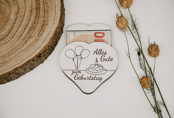 Du suchst nach einer einzigartigen Möglichkeit, Geld zu verschenken? Unser Geldschein Herz aus Bayern ist die perfekte Lösung! Mit einer stilvollen Laser-Gravur verleihst du deinem Geschenk eine persönliche Note.