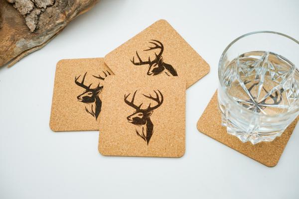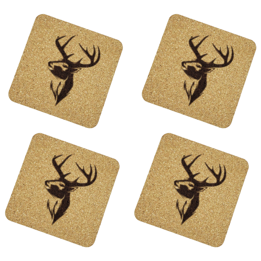 Hochwertige Glasuntersetzer mit Hirsch-Motiv aus Naturkork