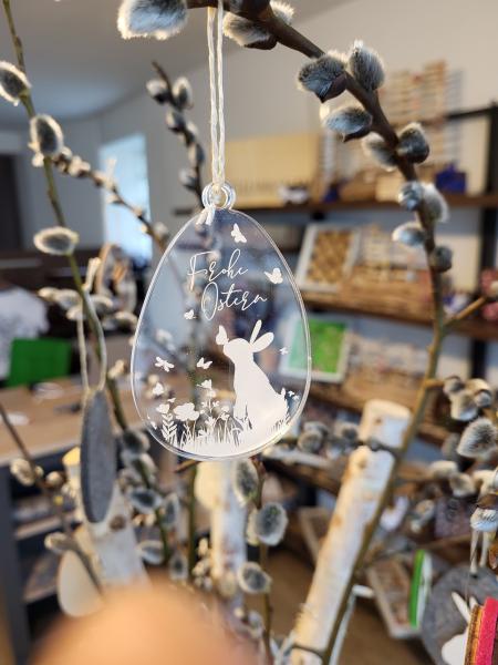 A Anhänger aus Acryl mid an Haserl und Waifoita für dein Osterstrauch und ebs stylisches zu hi stain.