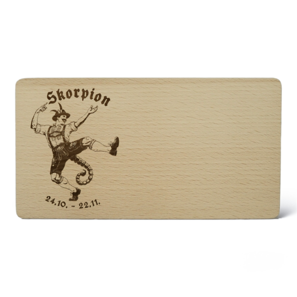 Genieße dein Frühstück stilvoll mit unserem gravierten Frühstücksbrettchen aus Holz im bayerischen Skorpion-Motiv. Ideal als persönliches Geschenk oder als Highlight für deine Küche!