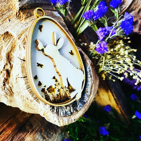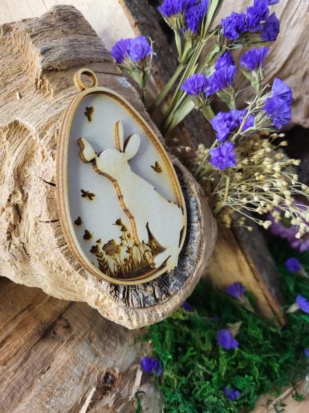 A Anhänger aus Hoiz mid an Haserl und Waifoita für dein Osterstrauch und ebs stylisches zu hi stain.