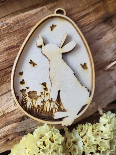 Osteranhänger aus Holz mit Hase und Schmetterlinge als Ostermotiv