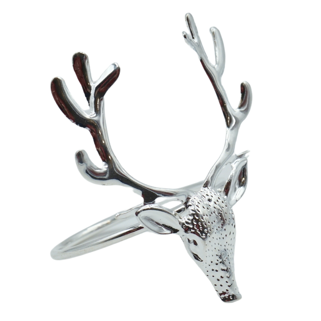 Unsere Serviettenringe bestehen aus hochwertigem Metall, das mit einer glänzenden silber-Oberfläche versehen ist. Das Hirsch-Motiv, detailgetreu und elegant, wird zum Blickfang auf jedem Tisch und verleiht Ihrem Arrangement das gewisse Etwas.