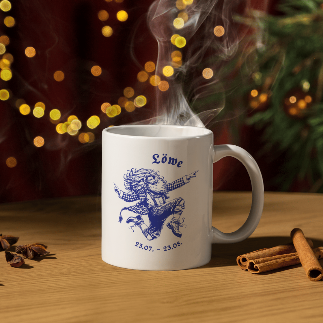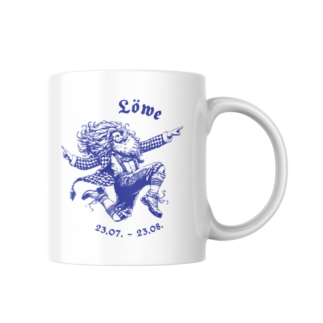 Genieße deinen Kaffee, Tee oder heiße Schokolade in stilvollem bayerischen Design! Diese weiße Keramiktasse mit dem kraftvollen, männlichen Löwen-Motiv aus der Reihe der bayerischen Sternzeichen bringt den stolzen Löwen in dein Zuhause. Mit ihrem edlen Design und der hochwertigen Verarbeitung wird sie schnell zu deinem liebsten Begleiter für gemütliche Auszeiten.