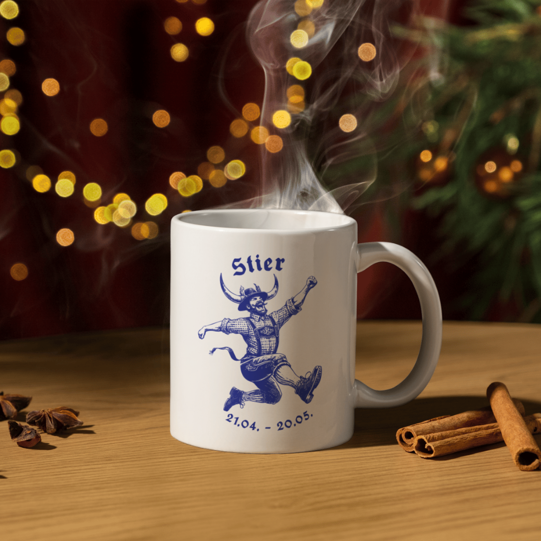 Einzigartiges Design: Das männliche „Stier“-Sternzeichen-Motiv aus dem bayerischen Raum zieht alle Blicke auf sich und macht deine Tasse zu einem echten Hingucker.