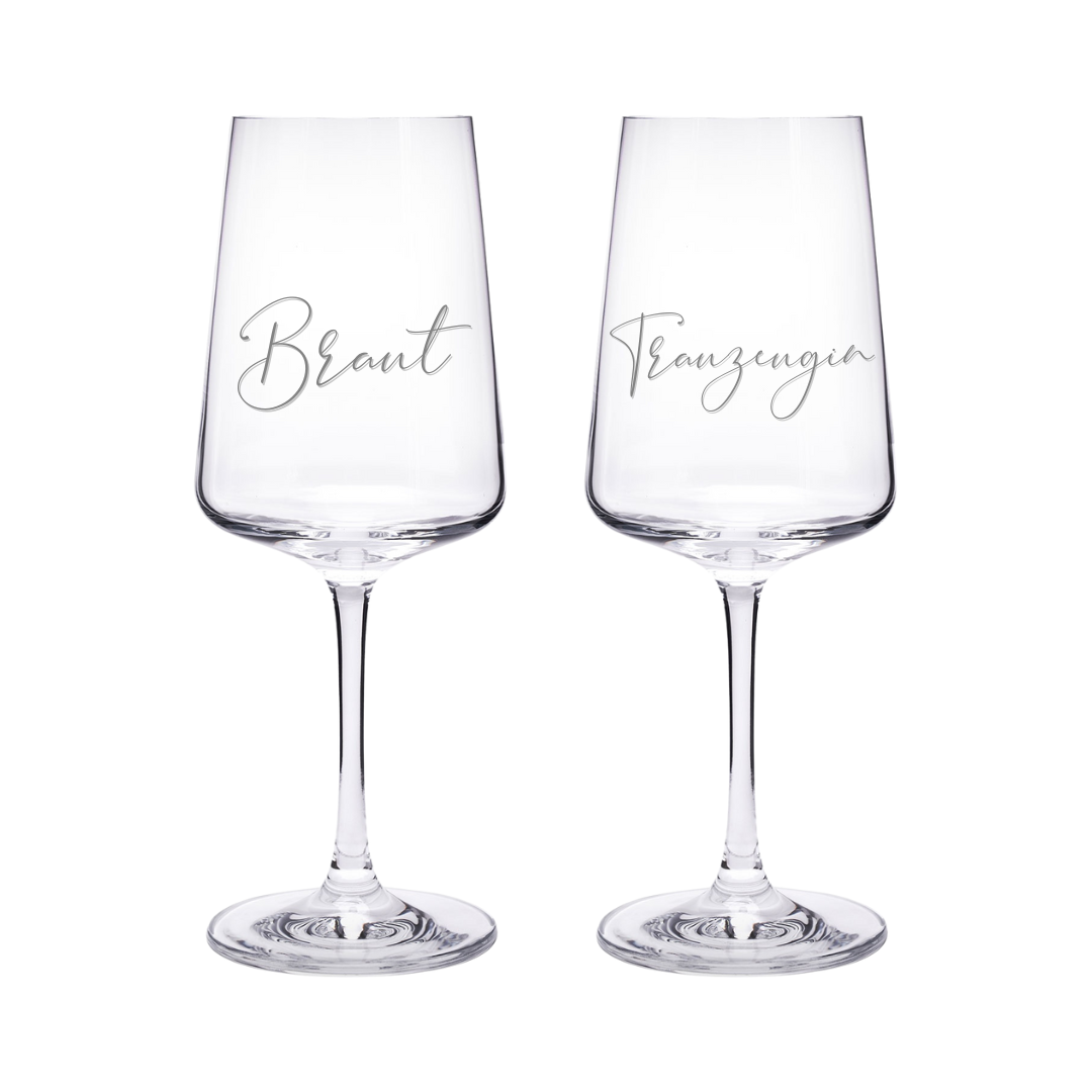 Feiern Sie den besonderen Tag mit unserem exquisiten Weinglas-Set, das speziell für die Braut und ihre Trauzeugin gestaltet ist. Ob als einzelnes Glas oder im praktischen 2er Set erhältlich, diese eleganten Weingläser sind die perfekte Ergänzung für jede Hochzeitsfeier und den Junggesellinnenabschied.